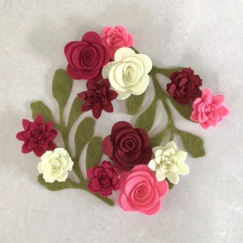 Pink Felt Flower Kit, Felt 3D flowers, Roll up felt flowers, Die cut felt flowers