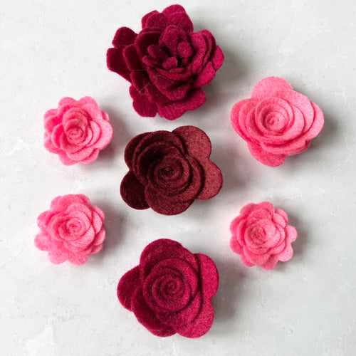 Ready Made Felt Flowers, Candy, Fuchsia and Garnet
