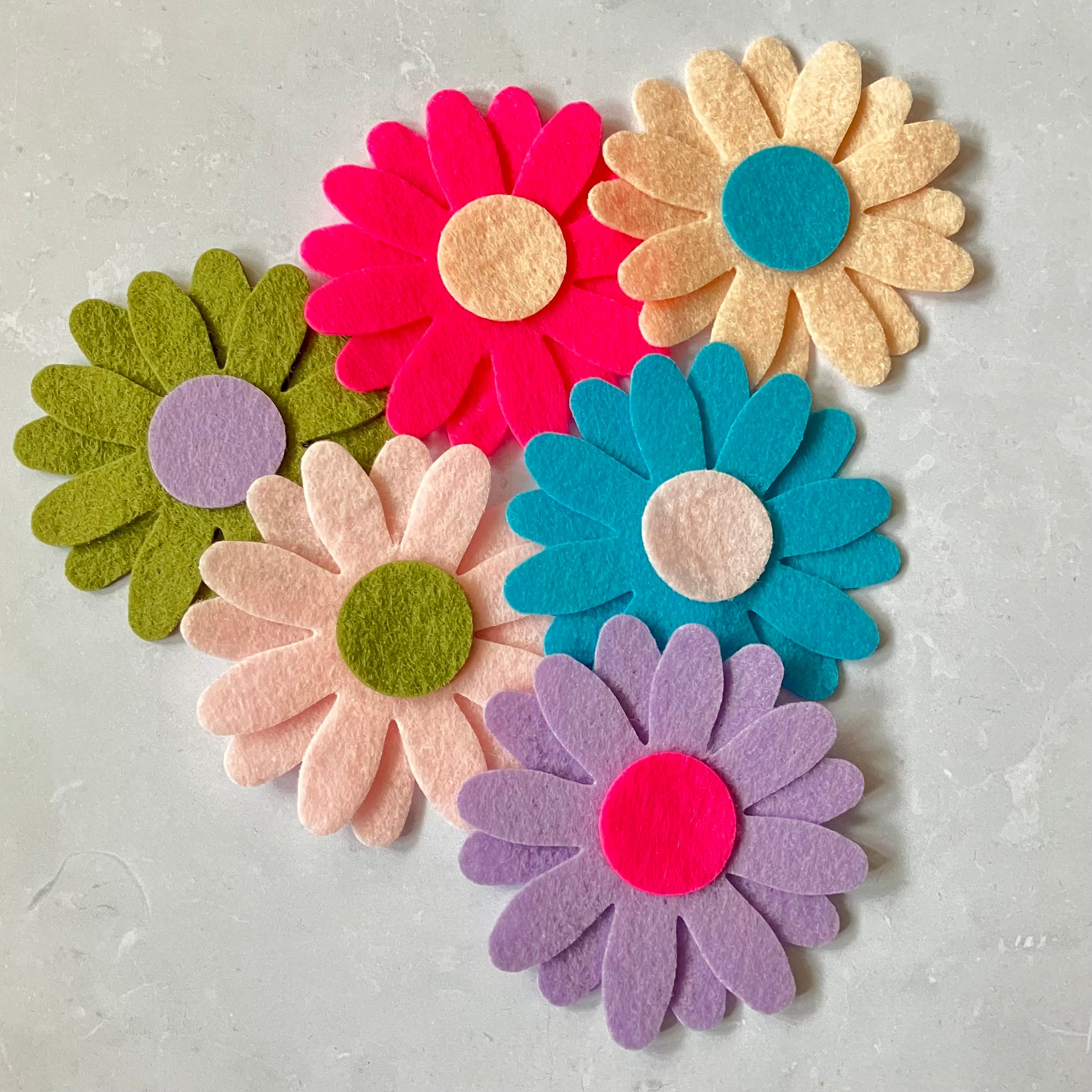 These Daisies are cut from felt using a die cutting machine. Handmade in my studio in Cheshire, England.