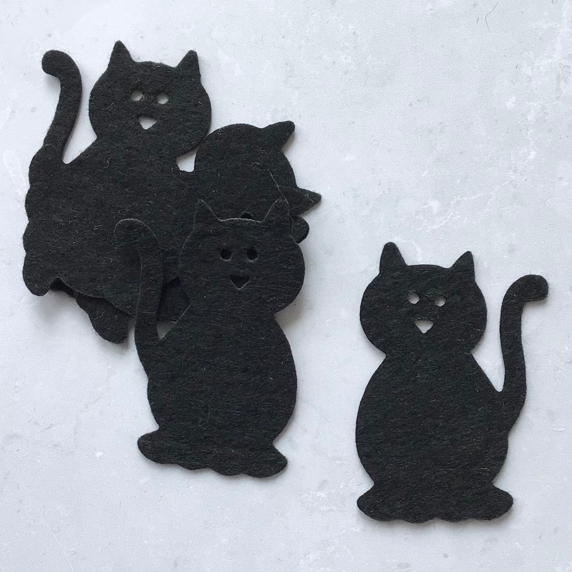 Black Felt Cat die cuts that you can use to make cards or embellish other projects with. They can be glued or sewed.