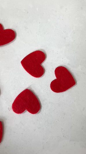 Any Colour Hearts are cut from felt using a die cutting machine.