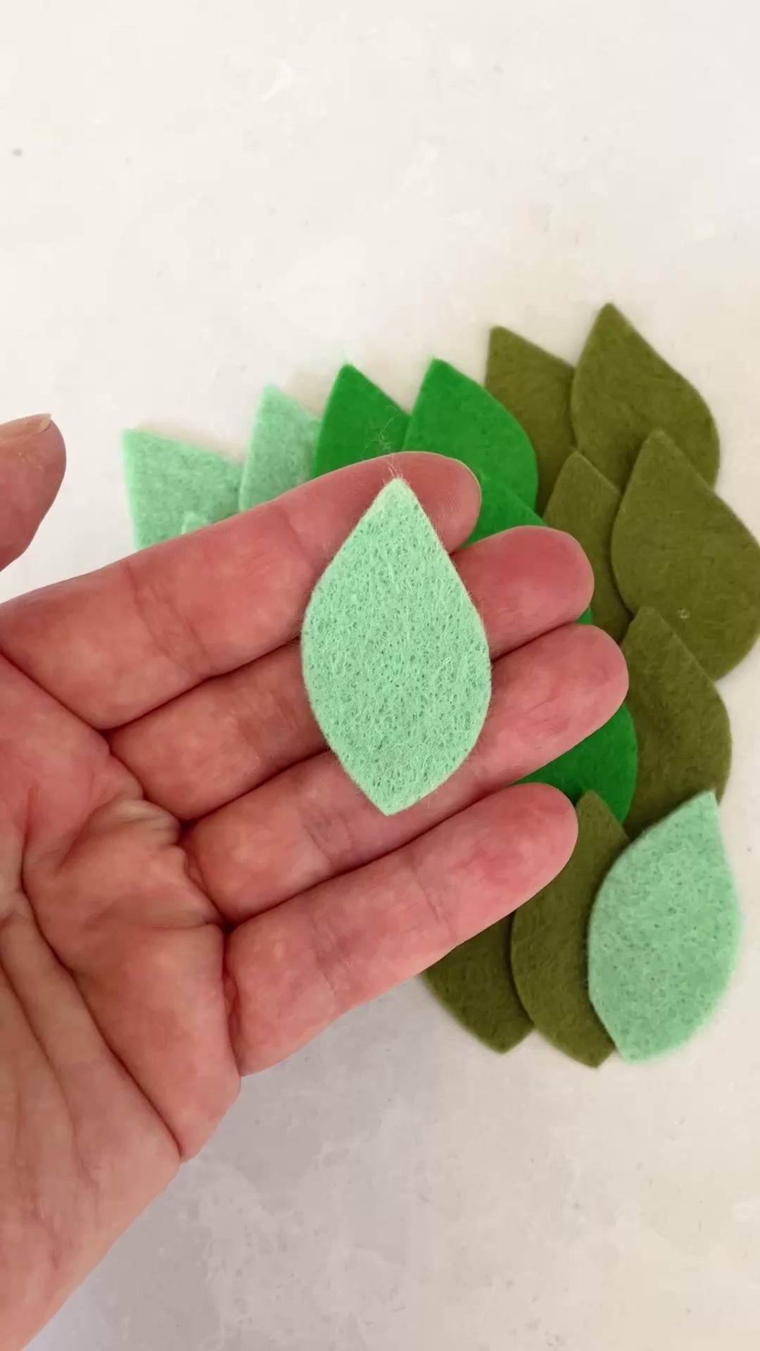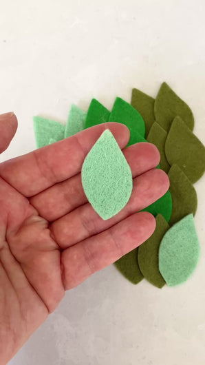 These Leaves are cut from different shades of green felt using a die cutting machine.